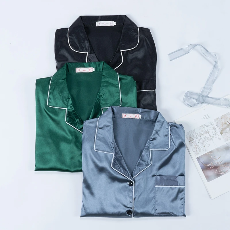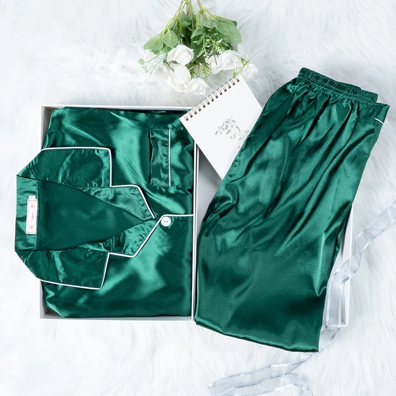 2 Pieces Faux Silk Satin Pajamas Set