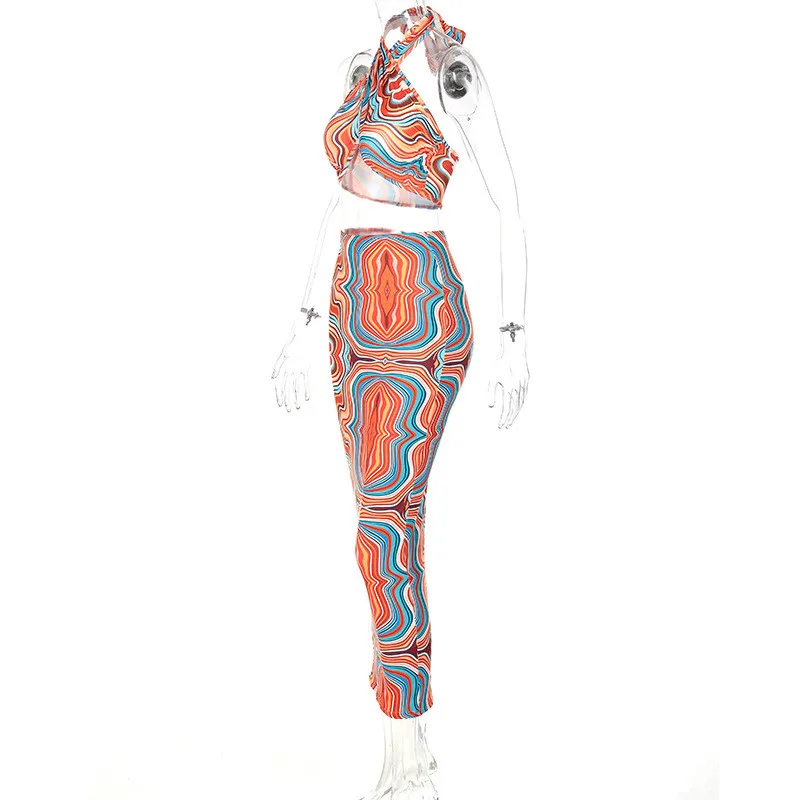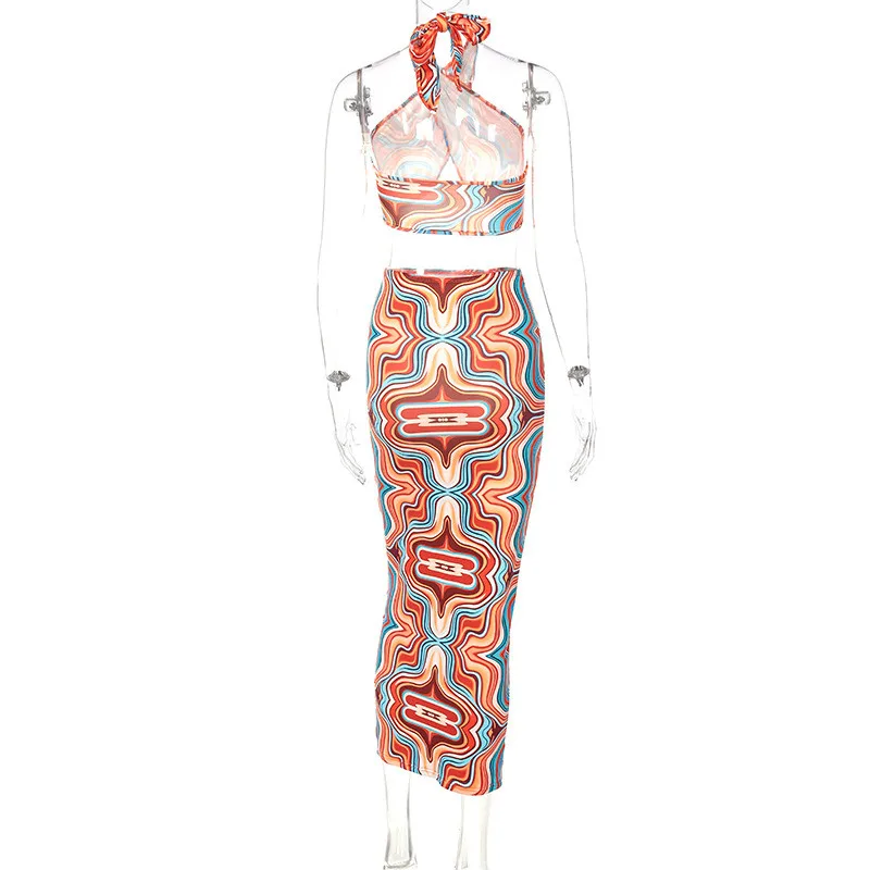 Be the first to review “Boho Print Outfits Fashion Bandage Midi Skirts Suits Set”