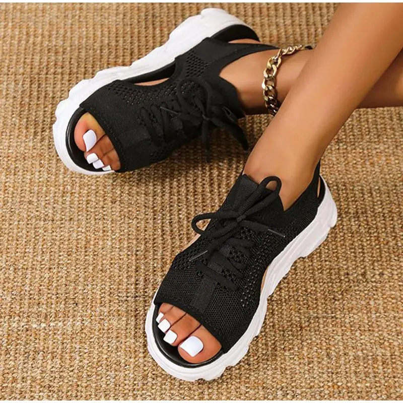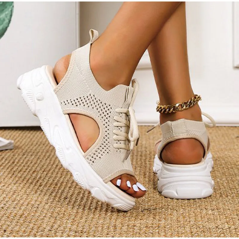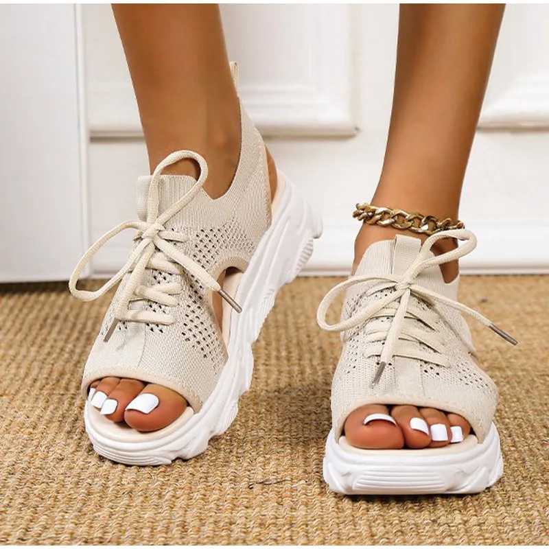 Shoes Women Platform Sandals 2020 Slip on Stretch Fabric Summer Women's Comfort Walking Ladies Sandalias Female Casual Footwear