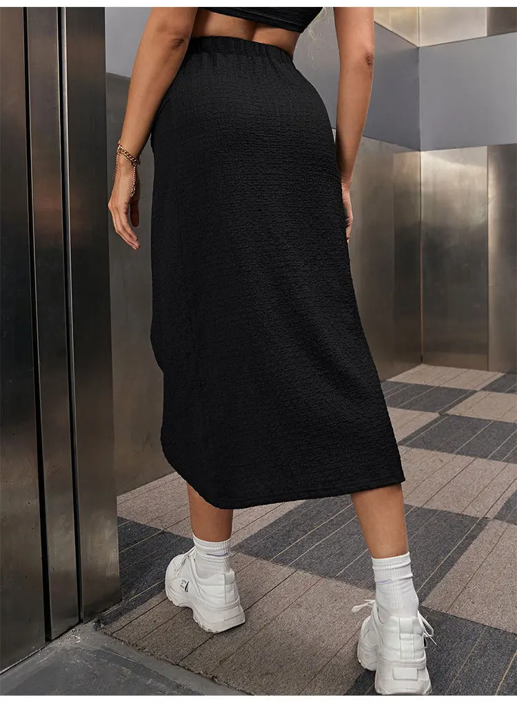 Elastic High Waist Front Wrap Midi Skirt