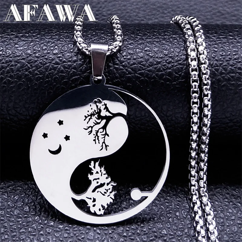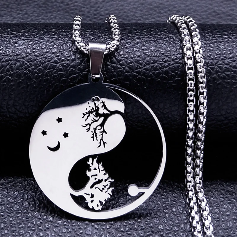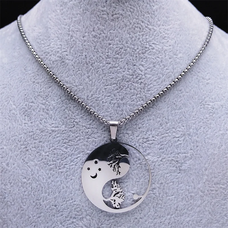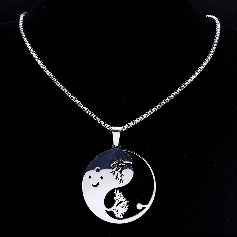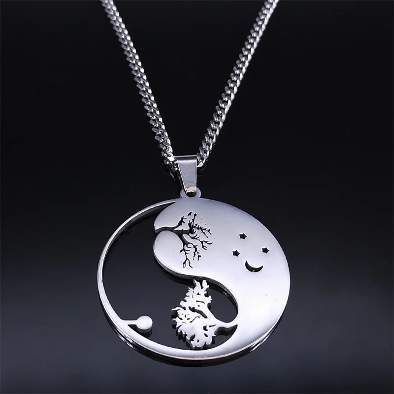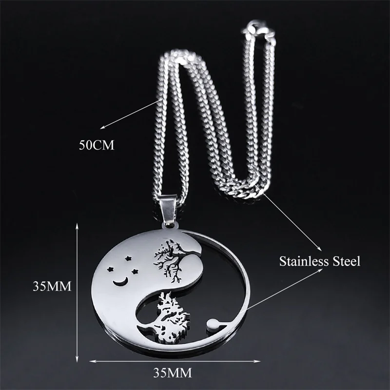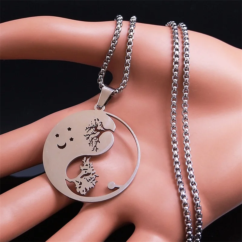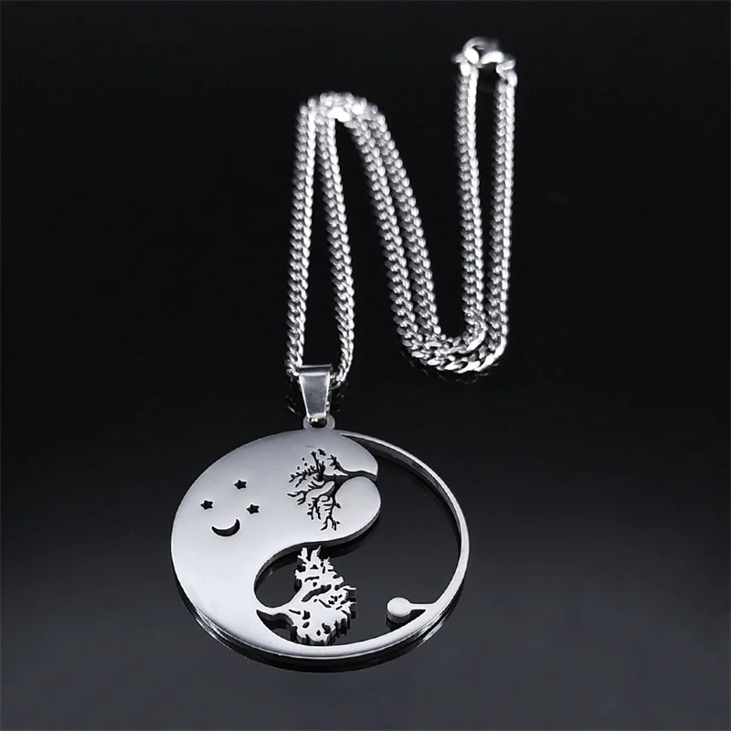 • Yin Yang Gossip Tree Moon Star Necklaces Chain for Women/Men Silver Color Necklaces Jewelry corrente masculina