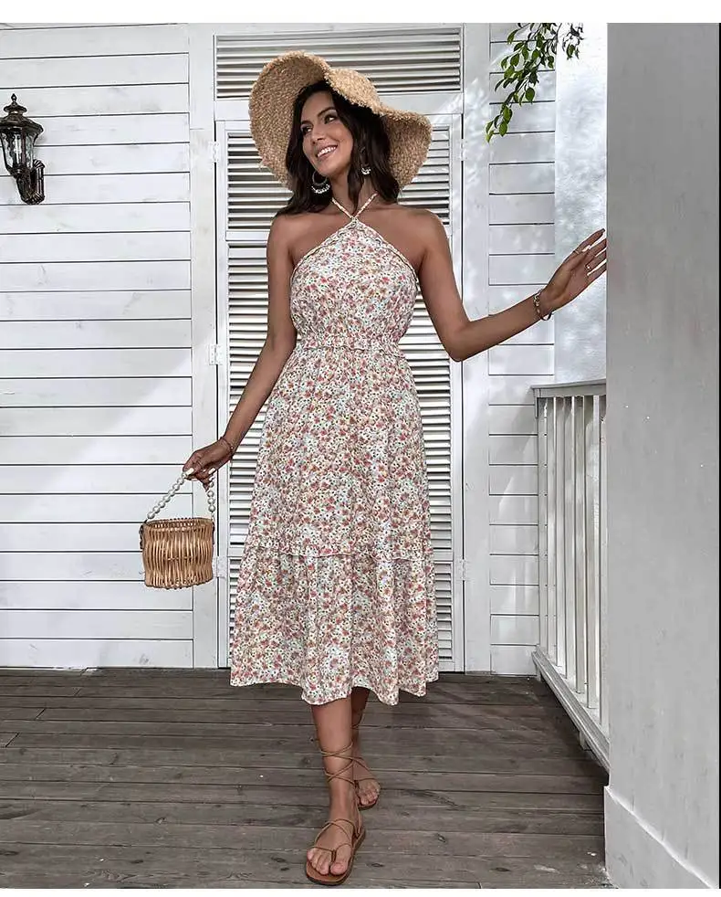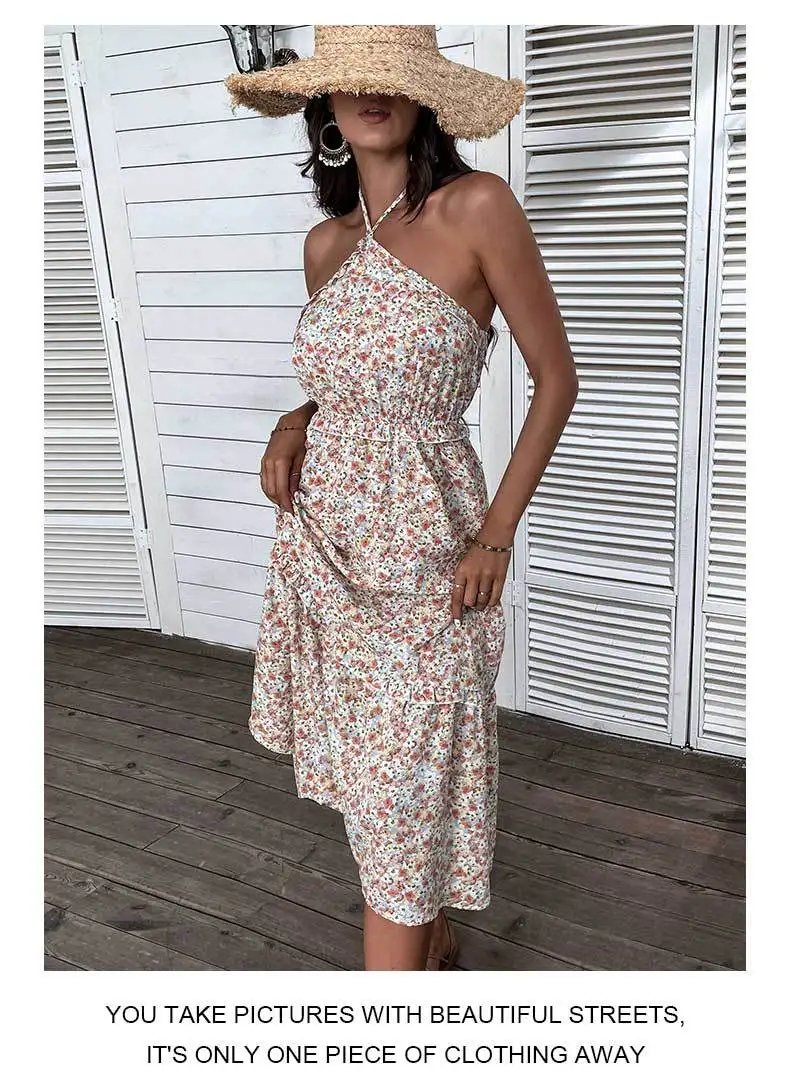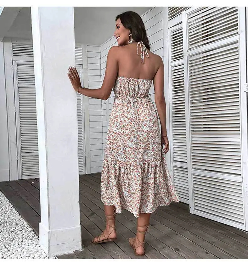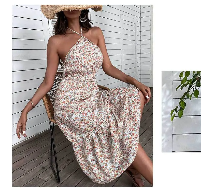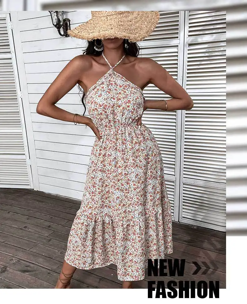 Sexy Summer Halter Off Shoulder Dress Women 2022 High Waist Backless Floral Birthday Party Vacation Beach Dresses for Ladies