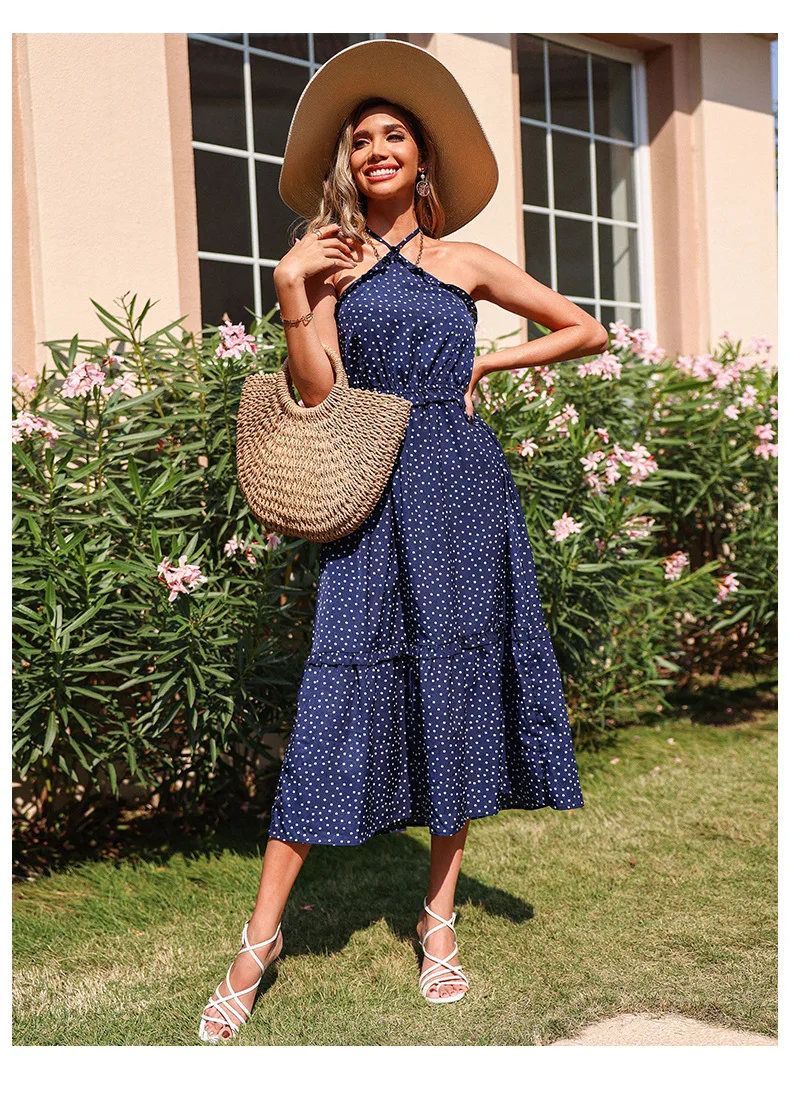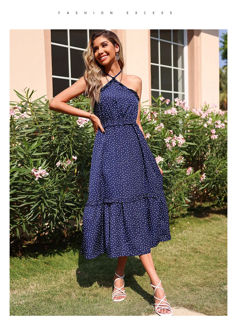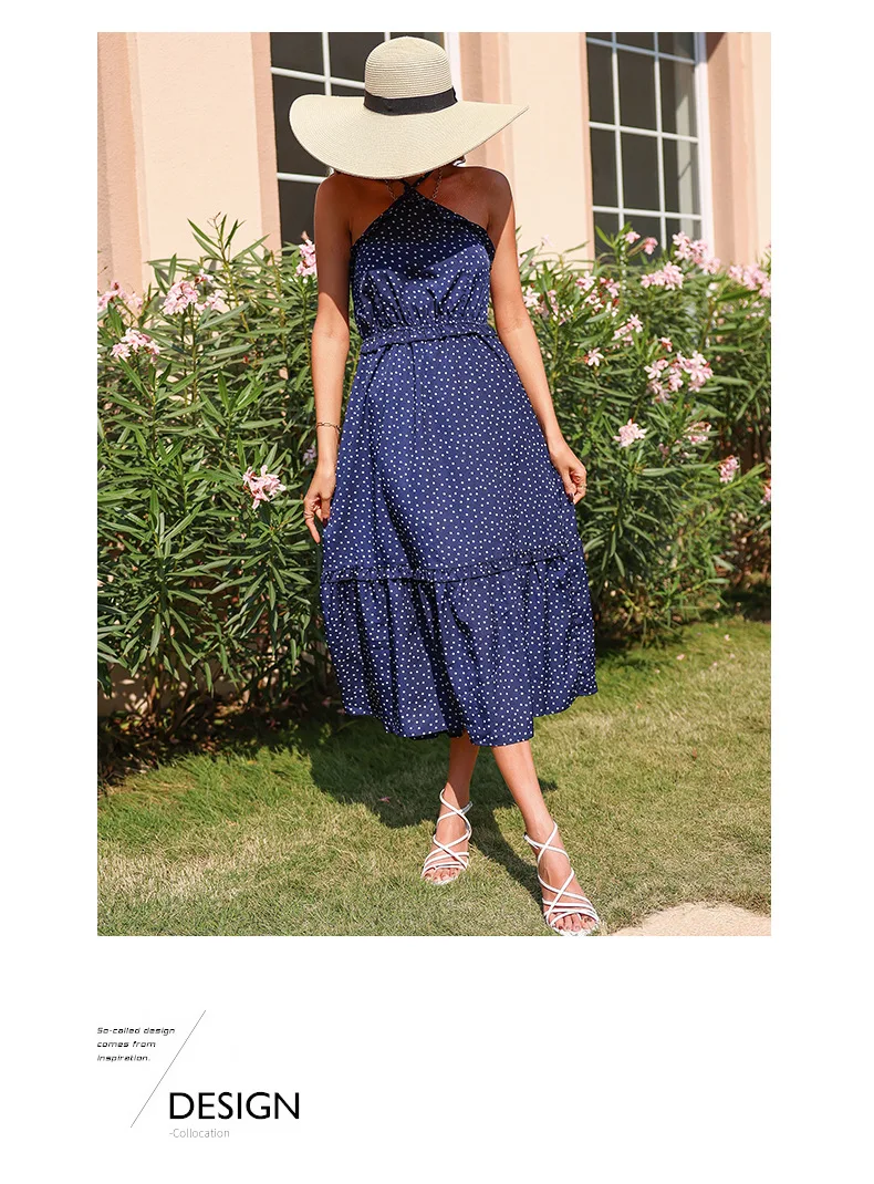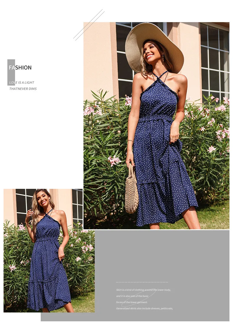 Sexy Summer Halter Off Shoulder Dress Women 2022 High Waist Backless Floral Birthday Party Vacation Beach Dresses for Ladies