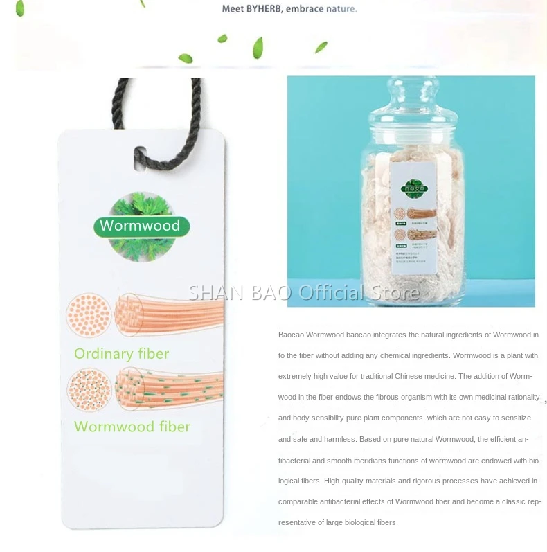 Material composition: 25% regenerated cellulose fiber (including wormwood fiber), 70% polyester fiber, 5% spandex