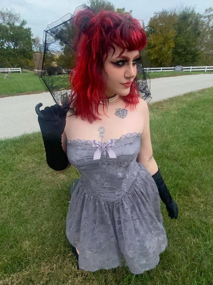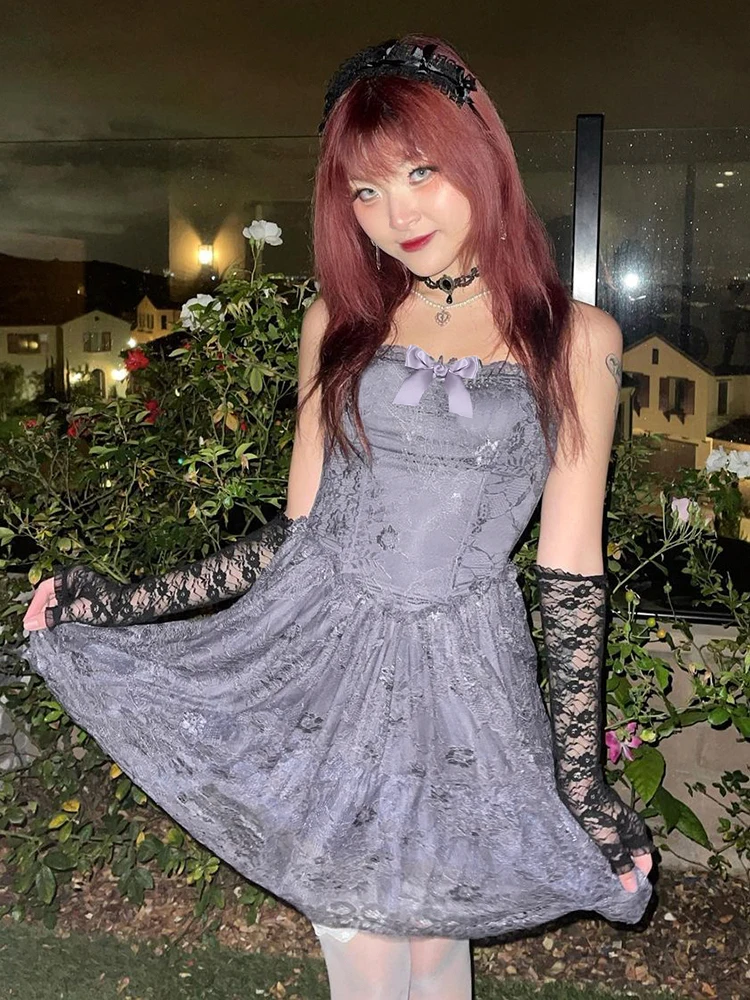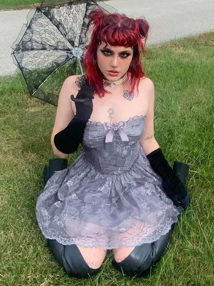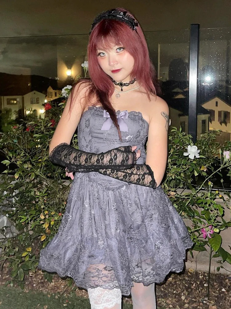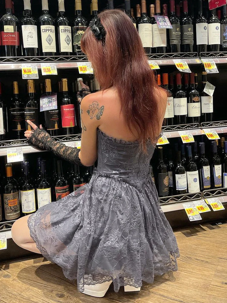 Strapless Frill Off Shoulder Sexy Lace Dress