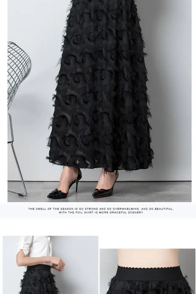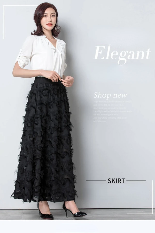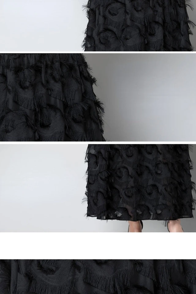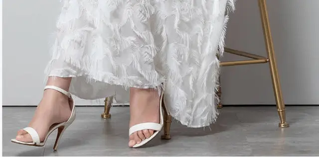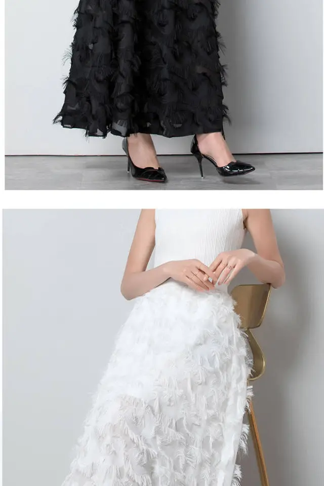 Summer New Feather Decorated High Waist Chiffon A Line Dress